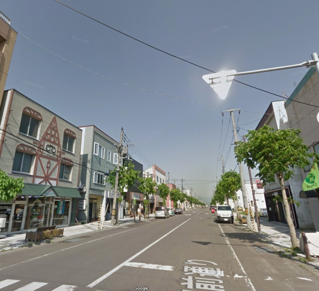倶知安駅の目の前!駅前通りに面する物件。間口11m、奥行き52.7mのL字型物件。奥幅20m。